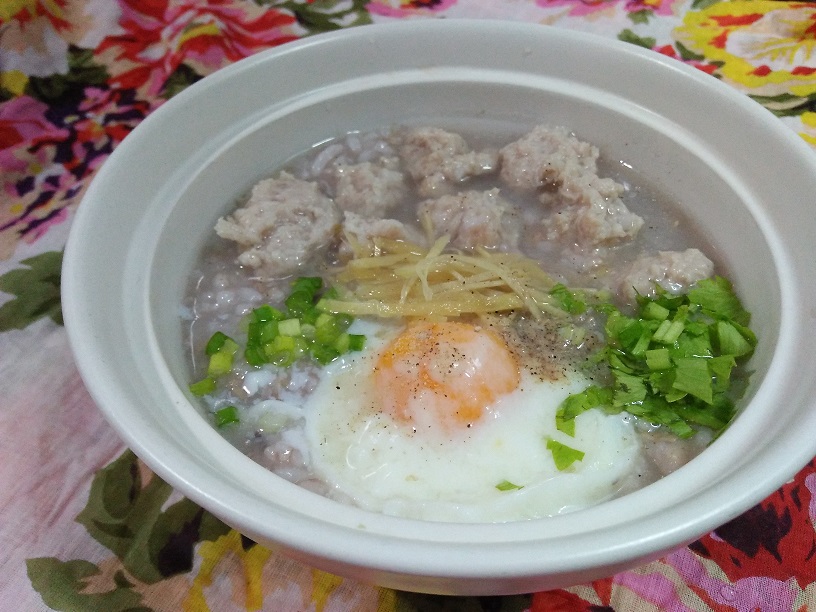 ต้มหมูสับ ทำไข่ลวกออนเซ็น 2 ฟอง หลังผ่าตัดต้องเสริมโปรตีนกันหน่อย แล้วต้มข้าวกล้อง ใช้เวลาเคี่ยวหลายชั่วโมงกว่าจะนิ่มเพราะต้มจากข้าวสุก คิดว่าจะทำเร็วกว่าต้มจากปลายข้าว คิดถูกแล้วที่ไม่ทำตอนเช้า