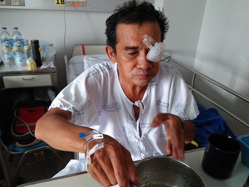 หมอให้พ่อพักฟื้นที่โรงพยาบาลก่อนเพื่อดูอาการ ถ้าไม่มีติดเชื้อจะให้กลับบ้าน แล้วค่อยนัดมาใส่ลูกตาปลอมภายหลัง