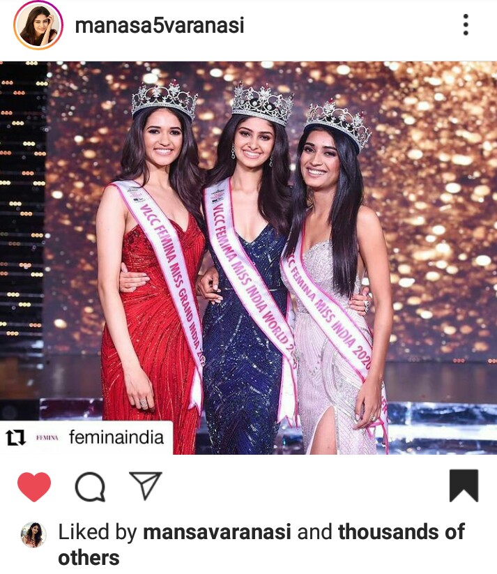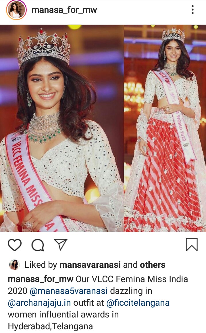 จนกระทั่งล่าสุด ทรายได้เห็นรูปของ Manasa สวมมงกุฎในอินสตาแกรม และมีคำอธิบายใต้ภาพว่า เธอได้เป็น Miss India ซึ่งจะเป็นตัวแทนไปประกวดมิสเวิลด์ Miss World 2021 ที่ประเทศเปอร์โตริโก ในเดือนธันวาคมนี้