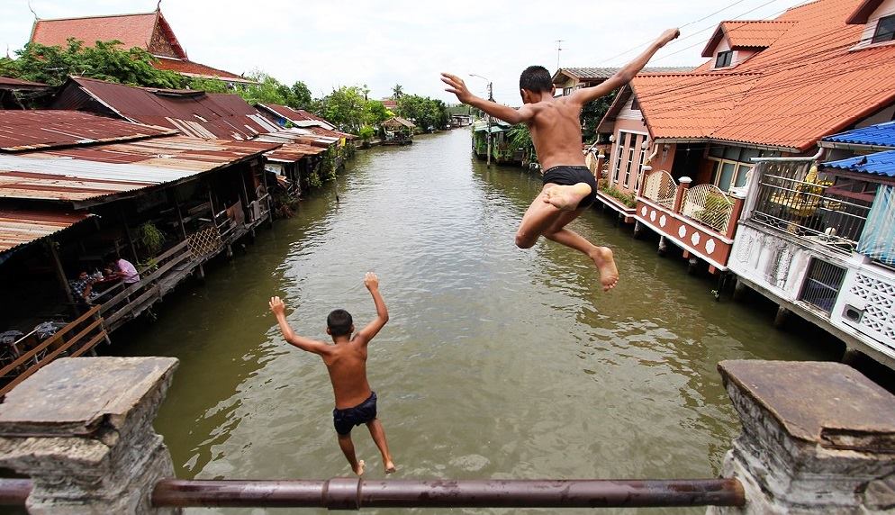 - ภาพเด็กกระโดดน้ำที่คลองบางหลวง จาก theTripPacker